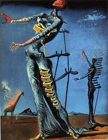 Jirafa en llamas, Salvador Dalí (1936). This painting was painted by a Spanish surrealist artist who always portrayed his dreams and thoughts into his artworks. This is the way how Dalí perceived life and the world surrounding him. This is the way how Dalí expressed his identity to the world. In this case, “Burning jiraffe” the different elements of the painting represent a different thought that Dalí wanted to express. For example, the drawers represent a form of entering someone’s subconsciousness. In his case, they were always open, because he was very transparent of who he was.